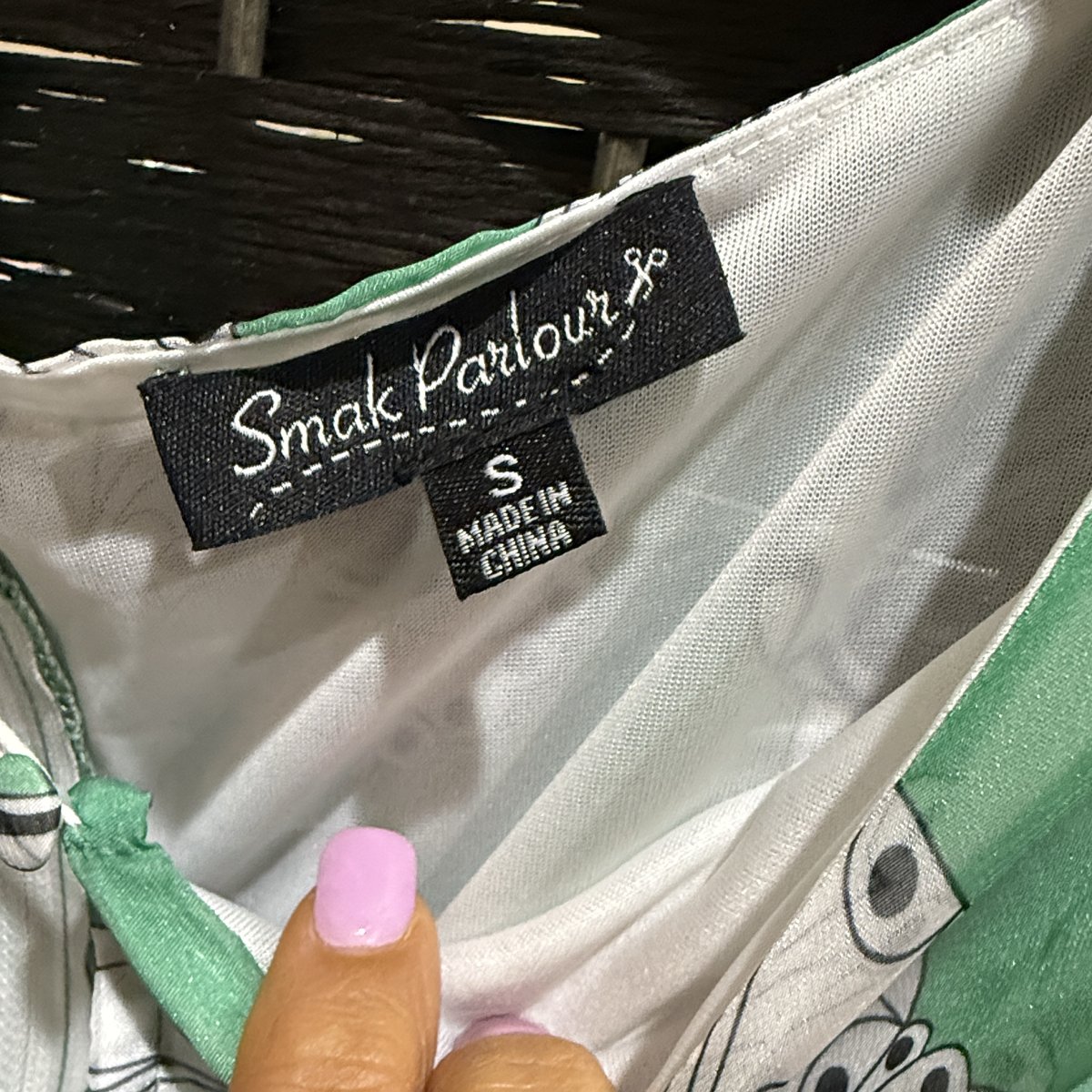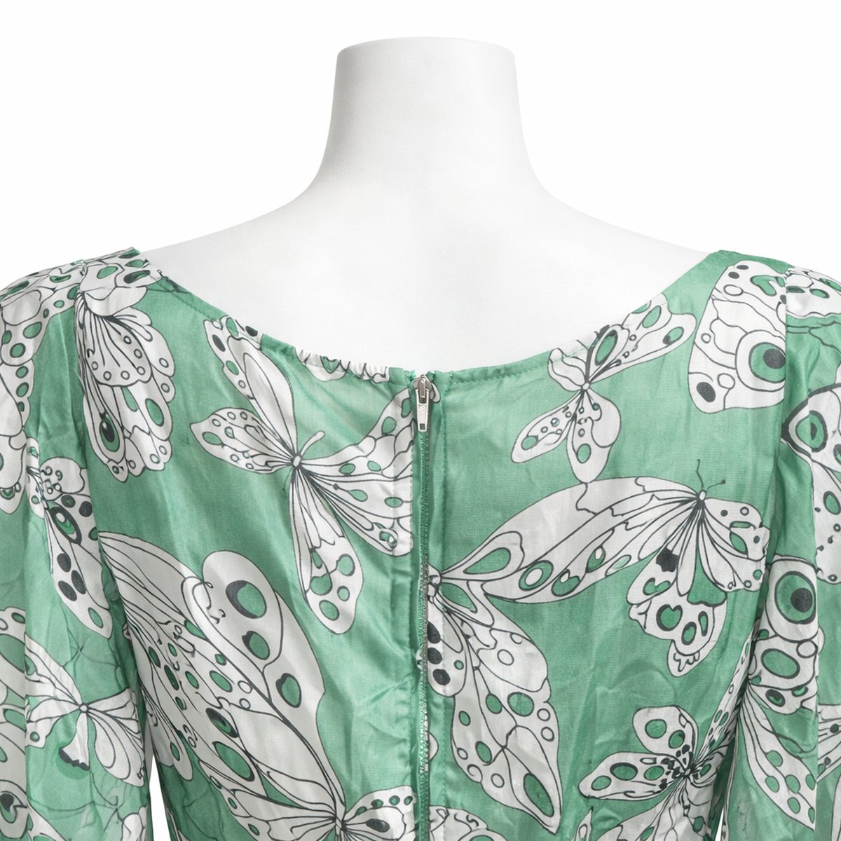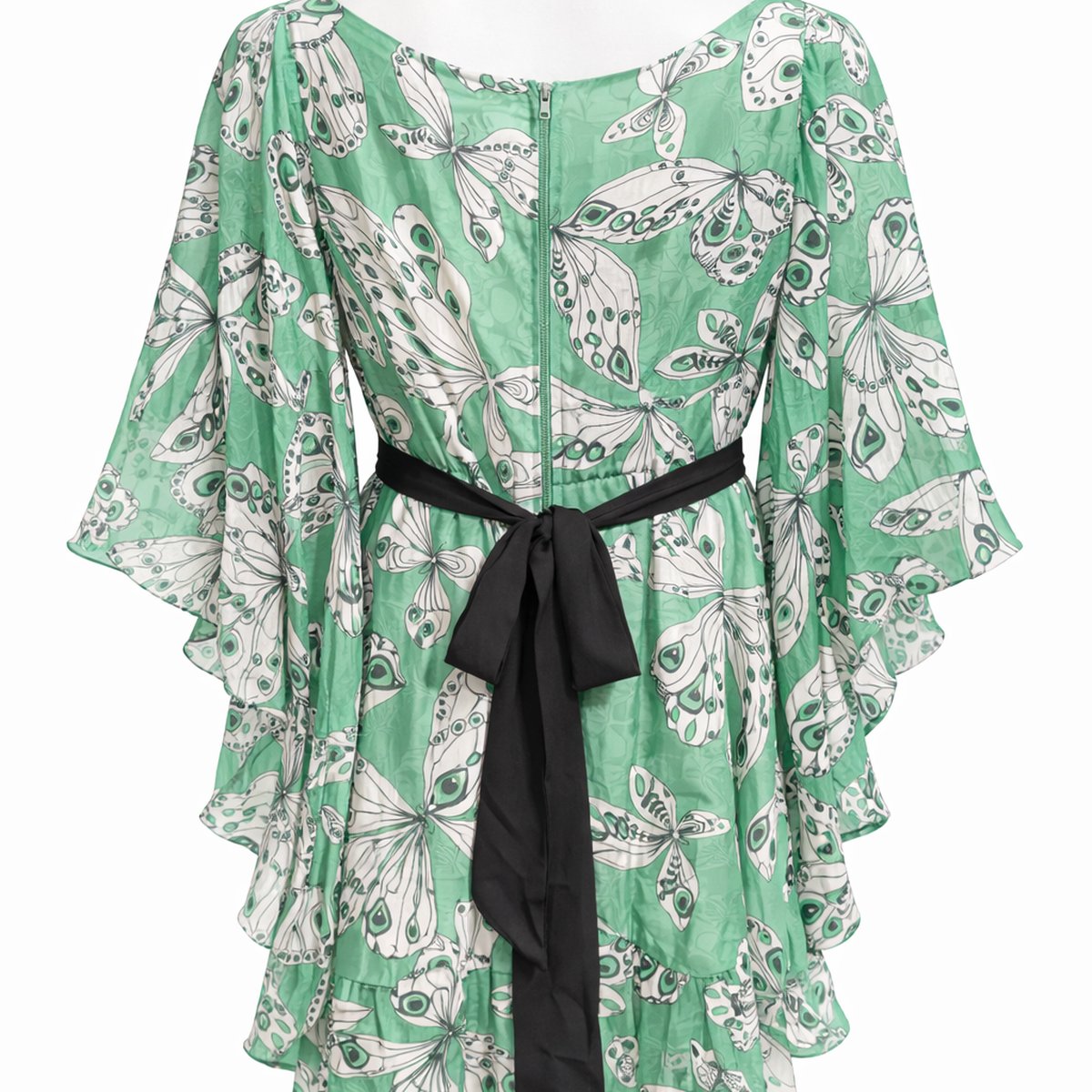Smak Parlour Green Butterfly Print Dress Size Small Kimono Sleeves Back Zipper